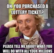 I stopped into my old work place for a bit yesterday. I was part of a large group of lottery people. When one of the three big lotteries we can play gets up to some obscene amount of money, our designated guy gathers $5 a person and buys a stack of tickets. Even though I no longer work there, I’m a five minute drive and the last thing I wanted was to hear about them winning a big pot so I said I’d continue for a bit and yesterday I had to drive up and pay the man.