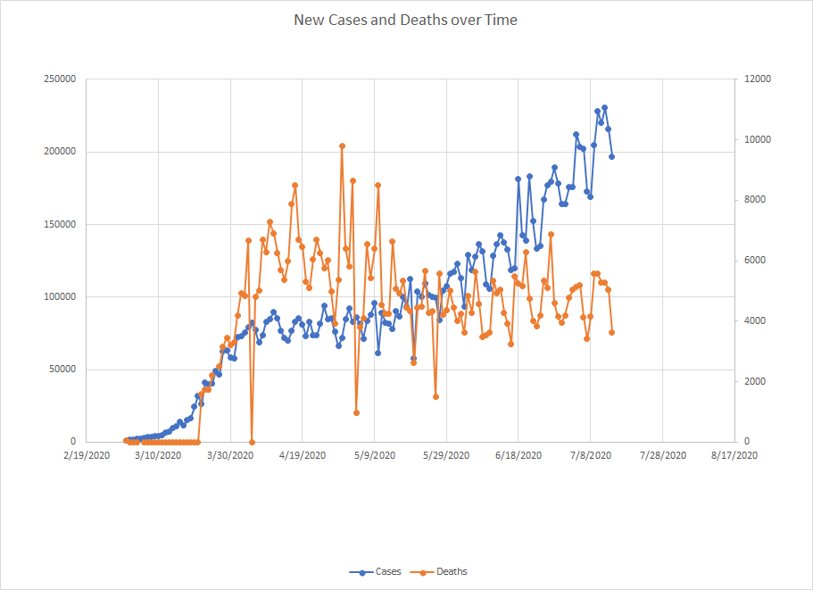 Maybe this is just a sign that health authorities are better able to respond now. Or maybe that places are doing a better job protecting vulnerable populations. There’s still room to run in a lot of places and some countries are seeing second waves so it is likely this increase continues for a bit. At some point, it would seem like we hit a saturation point and the number of cases starts to level off. At least that is the hope. We shall see.