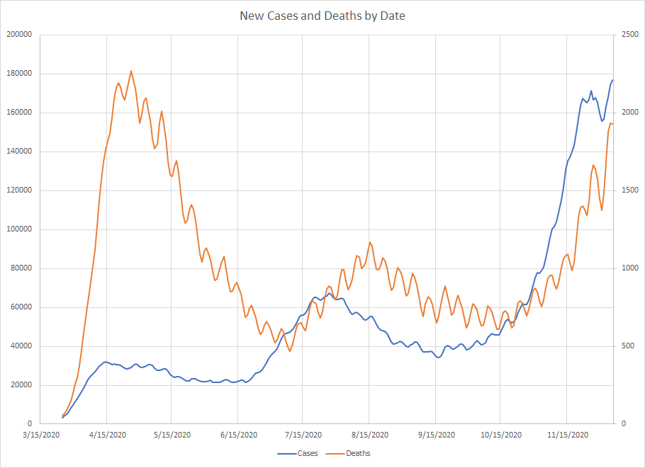 You do have to remember that we didn’t have the testing capacity back in April or July. If we were testing at the same rate, I’d expect those curves to be much higher. Still, it is accurate to say that the number of cases really took off from mid October until now. Unfortunately, by the time we start to get some clarity about what really happened over Thanksgiving, we are going to be into Christmas which is likely to be a much greater disruption in the data.