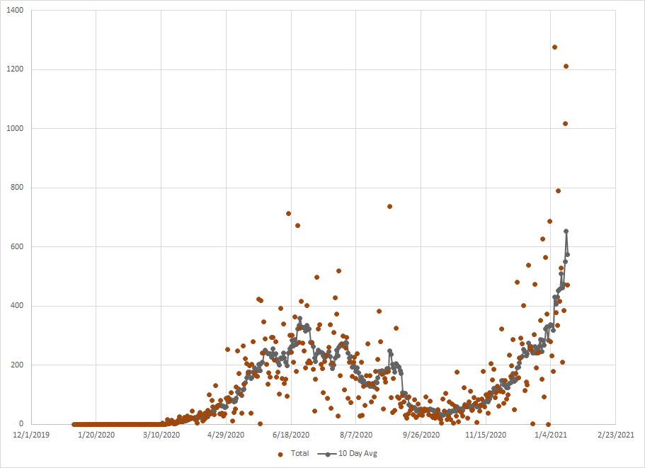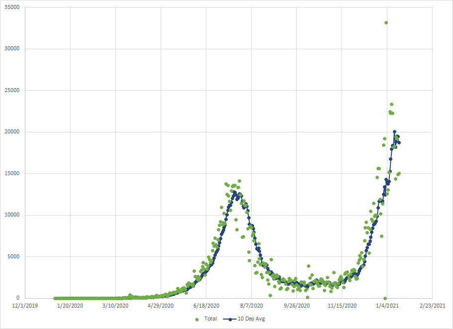 The last group is dominated by South Africa but also includes Namibia and Botswana. We have two waves. The first was during their winter with a peak in mid July. The second wave started in Mid November and may have peaked although it is too early to know. I guess South Africa also has a variant of the virus so who knows what that means to all of this. The second wave did hit a higher peak than the first but some of that is coming from the other countries in the region. The daily cases in South Africa weren’t that much higher than July so I don’t know how much, if any, difference this variant made.