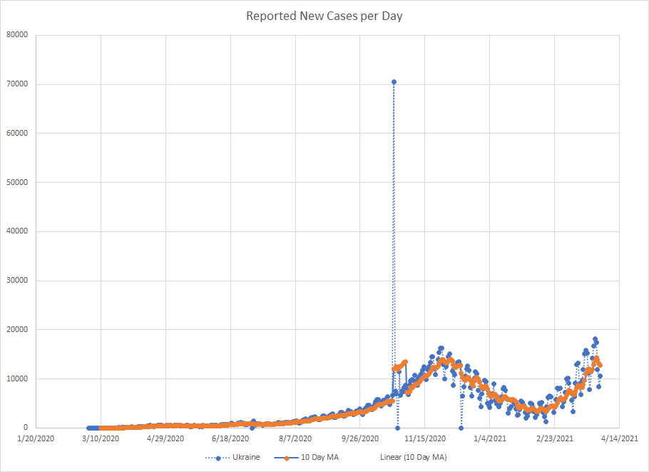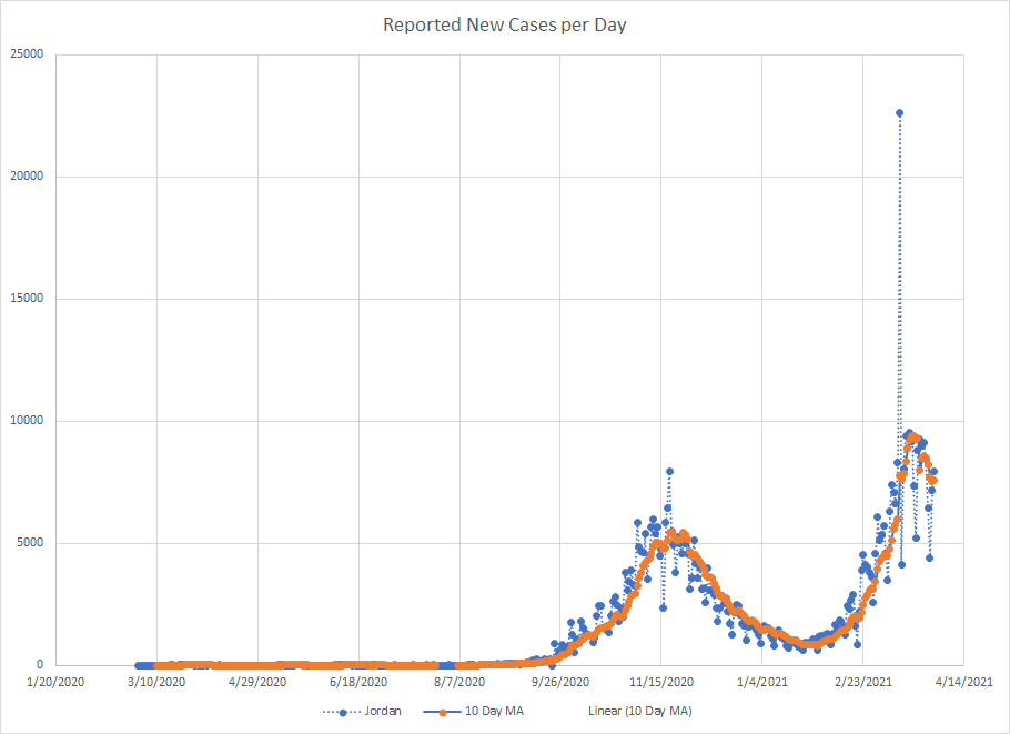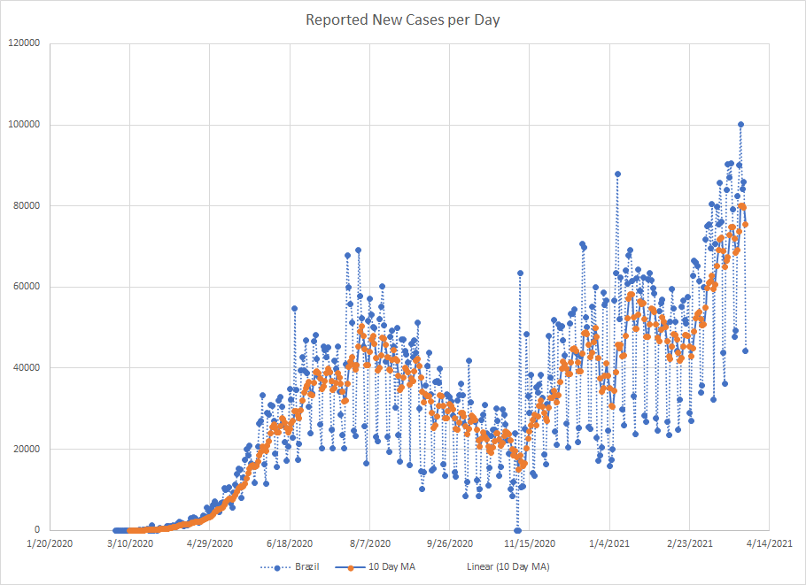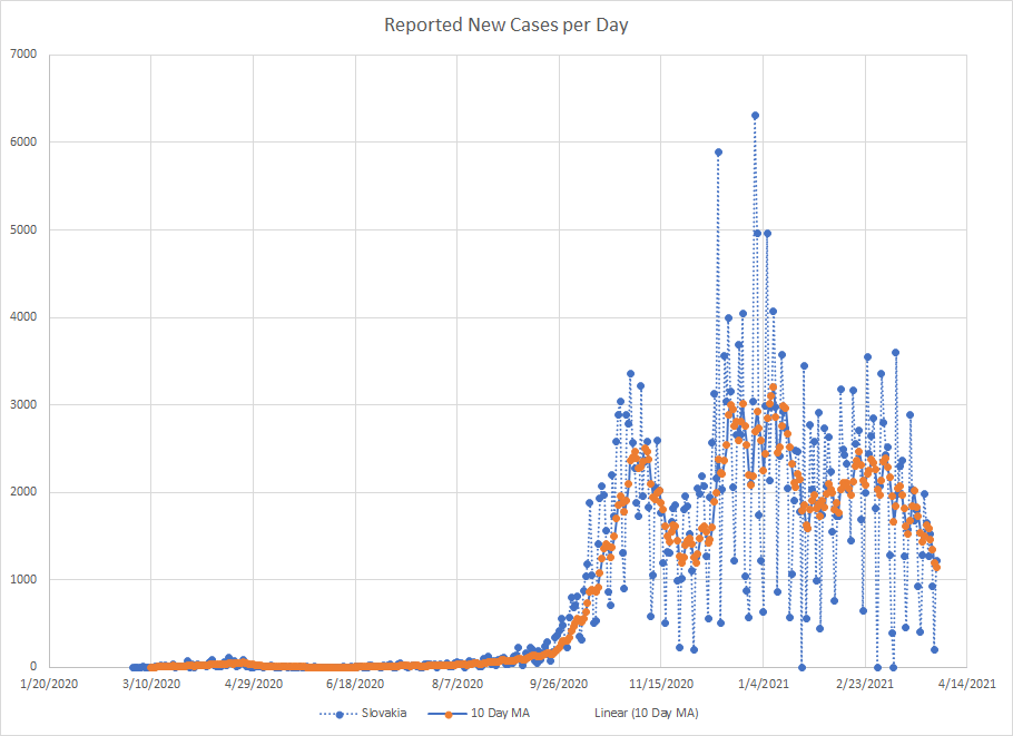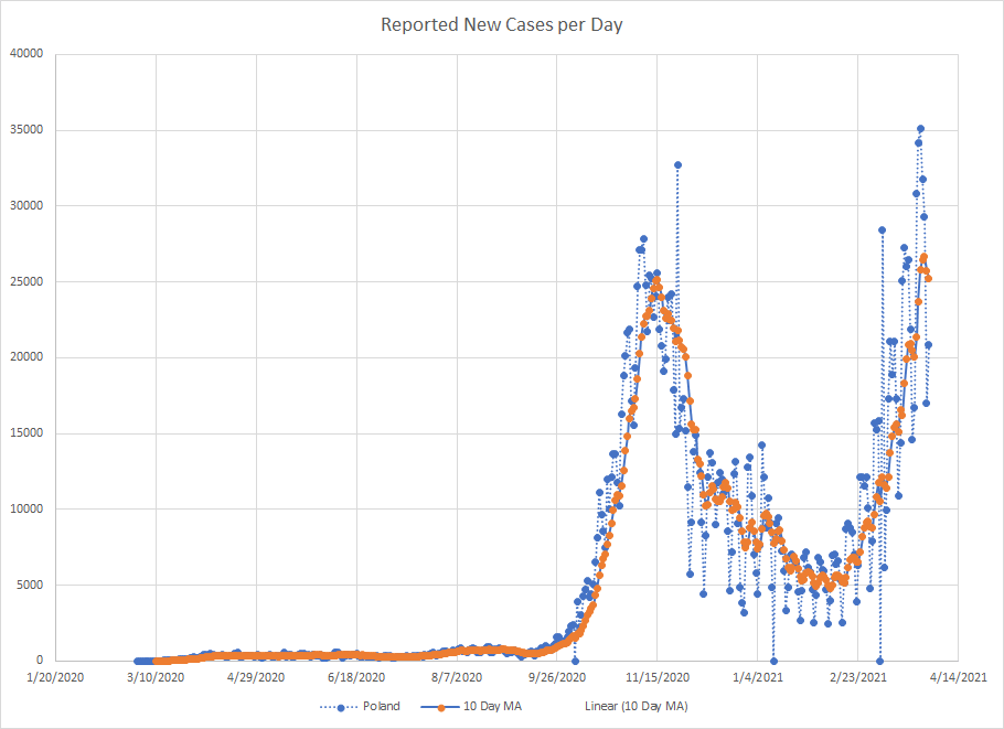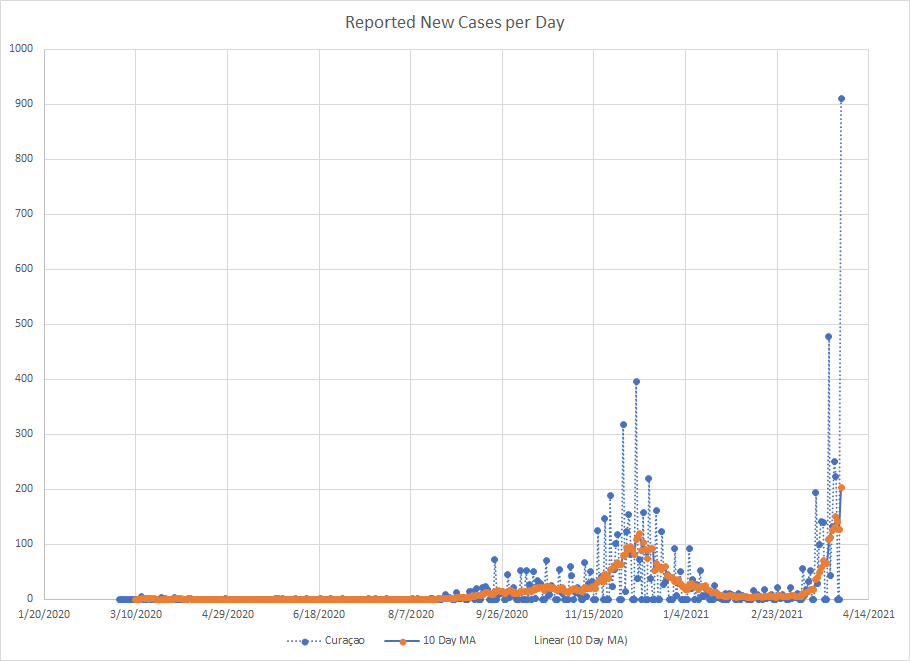 As we are near the end of March, it seemed like a good time to just do a mini recap. One of the things I’ve used from the start is a ten day moving average of cases. It works best in places where reporting is done on a regular basis. There are several countries that report less frequently like once a week or so and then the averages tend to be less useful.