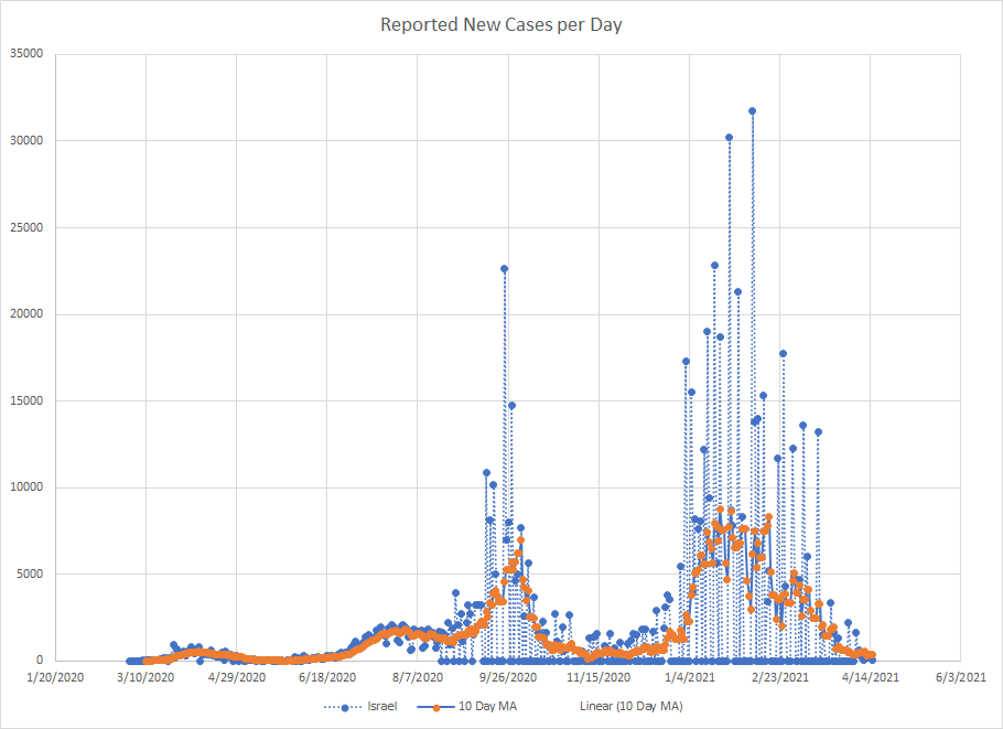 One last graph to show and that’s for Israel. Like the UAE, they rank high in terms of the percentage of people vaccinated. At least according the WHO database. Maybe this is a preview of things to come in other places.