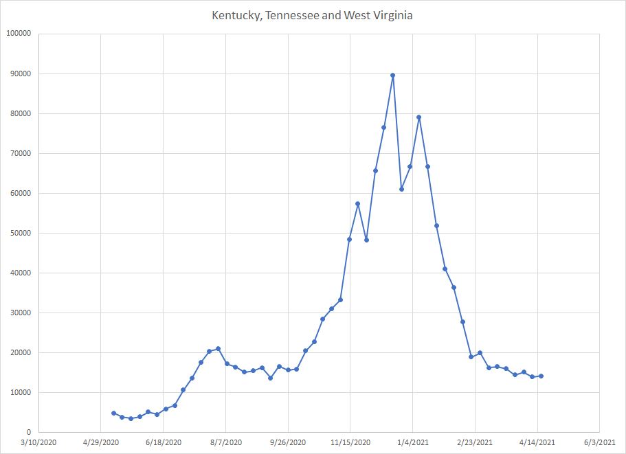 The next group is just three states and none of them have been problematic. Well West Virginia looked that way for a bit but it has been falling recently. As a region, they are just seeing a slow drop over the last six weeks and there is no reason for concern here.