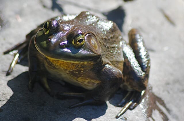 I mentioned the new visitor. I don’t think he’s a new visitor but just not something we had seen before. While we were counting turtles, a large male bullfrog made an appearance. We heard him before we could see him but with the sun shining on the bright yellow underside, he was pretty easy to pick up.