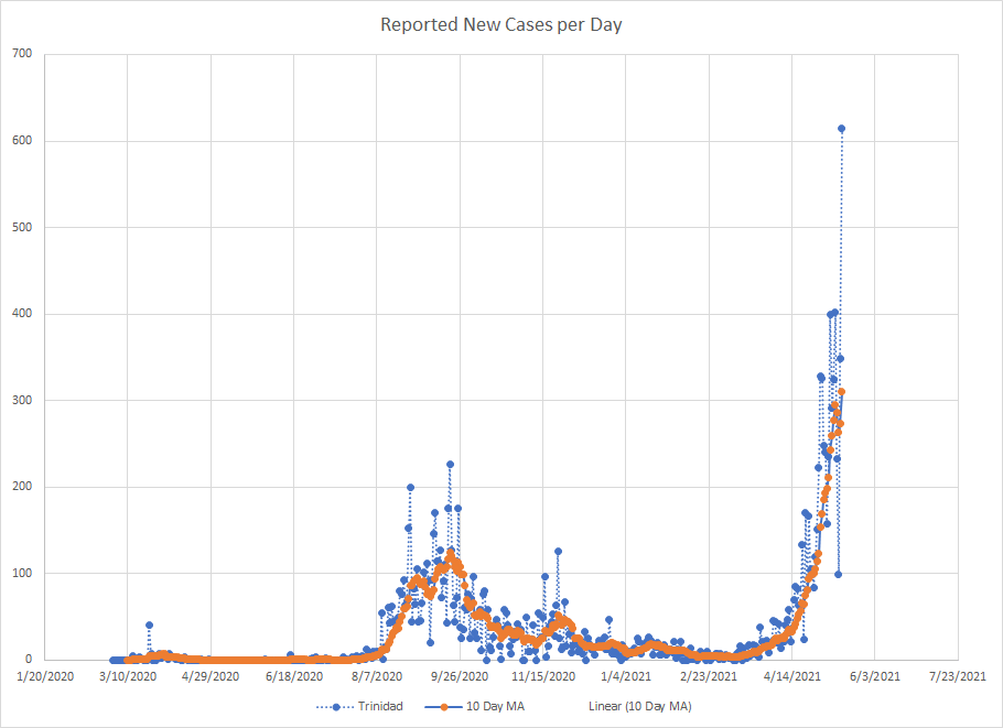 One other place that saw a big increase was Trinidad and Tobago. The current increase started in mid April but it looks like it has slowed a bit recently. That is if you ignore the big spike yesterday.