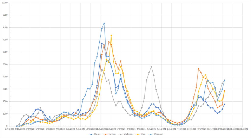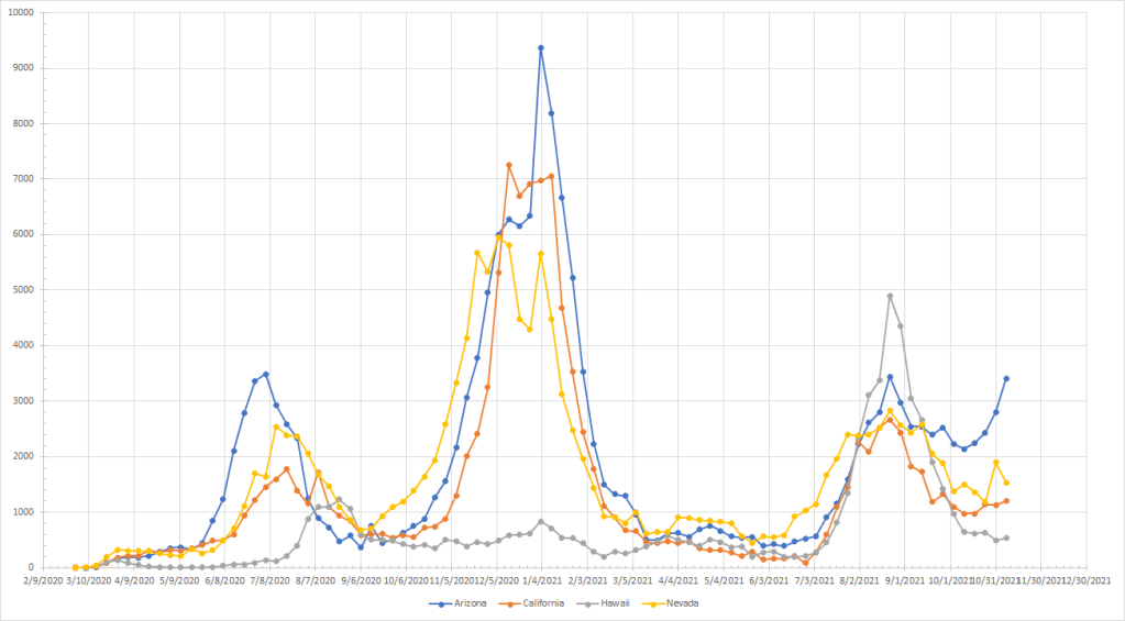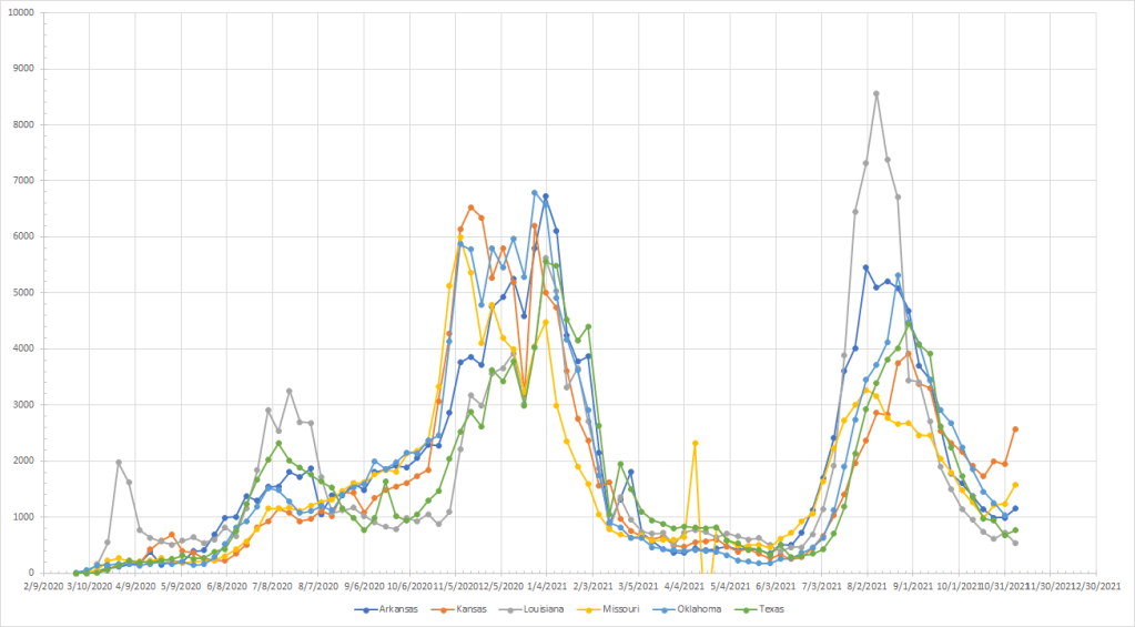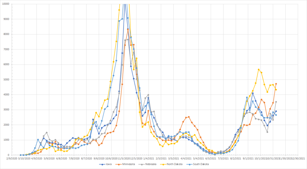 Next week’s post will cover this week. I expect disruptions over Thanksgiving again so we should expect some odd results for a few weeks. Of real interest is whether we have hit peaks in places like Montana, Wyoming and the Dakotas.