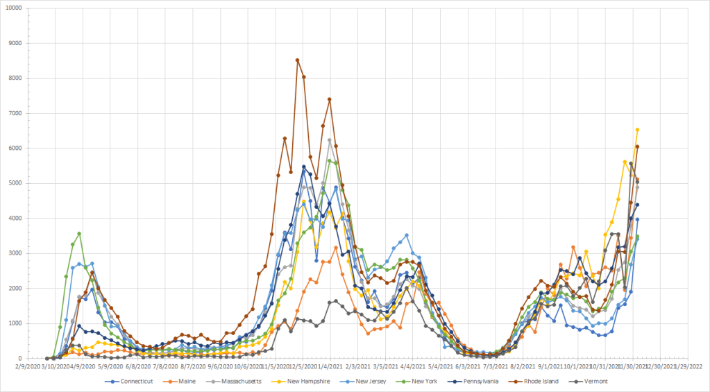 - Pennsylvania (42) – Outside of Vermont, the slowest rate of growth in the region but more cases than New York so they end up here.