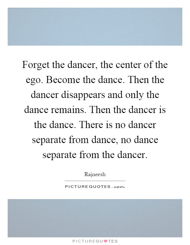 This quote is kind of deep. Probably intended to be a metaphor for other things but it kind of applies to ballroom as well. At least the part about becoming the dance fits. There may be no dancer separate from the dance but people notice the dancer anyway. So I don’t know what it really means.